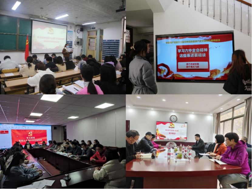 及时组织各党支部党员干部和师生认真学习全会公报,收听收看解读全会精神的新闻发布会,领悟全会精神,分享学习感悟,迅速掀起学习宣传贯彻全会精神的热潮,大家纷纷表示,要紧密结合当前党史学习教育,深入学习领会习近平总书记重要讲话精神和全会精神,从党的百年奋斗重大成就和历史经验中汲取智慧力量,坚定自觉践行初心使命、传承弘扬伟大建党精神,以昂扬的姿态迈进新征程、建功新时代。