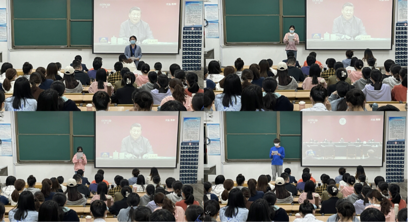 在学习过程中,支部党员代表孙悦同志领学了习近平总书记的讲话内容,与会党员共同围绕习近平总书记的重要讲话精神进行了学习和讨论,党员代表也结合自身实际产生了心得感悟,进行了心得感悟分享。肖楠同志认为,作为一名学生党员,我们应该牢记自己的时代使命,把个人成长和国家发展结合起来,为实现中华民族伟大复兴贡献一份力量。王鑫同志认为,少年强则国强,全国广大青年应当牢记党的教诲,立志民族复兴,不负韶华,不负时代,不负人民,在青春的赛道上奋力奔跑,争取跑出当代青年的最好成绩。其他党员也纷纷表示要时刻牢记自己身上的责任,要把自己今天的学业、明天的事业同国家的需要、人民的需要紧密联系起来,肩负起建设社会主义现代化强国、实现中华民族伟大复兴的历史使命。