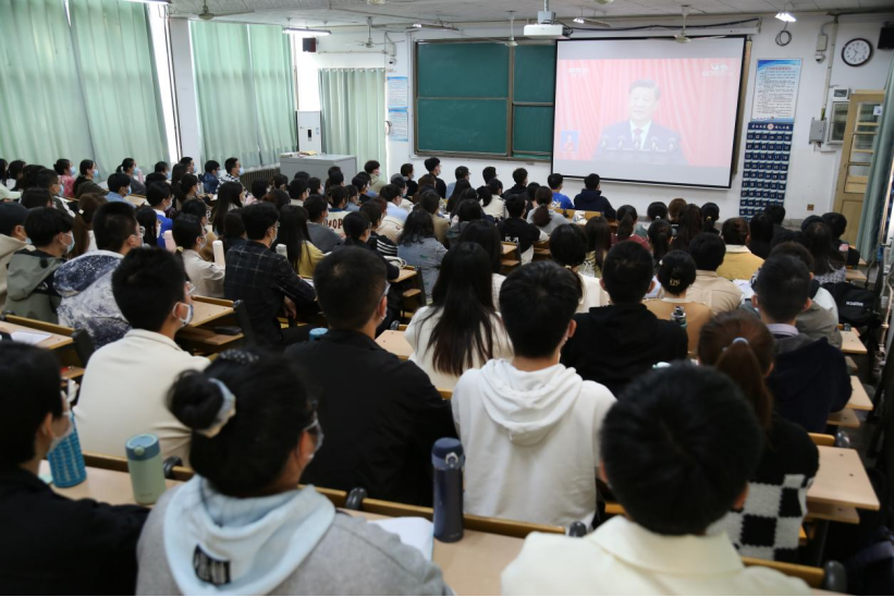 师生学习热情高涨,在观看开幕会的过程中,所有师生都聚精会神,认真听取习近平总书记做的工作报告。在观看开幕会的过程中,在场师生不时拿出笔做记录,听到精彩处不约而同鼓起掌来。