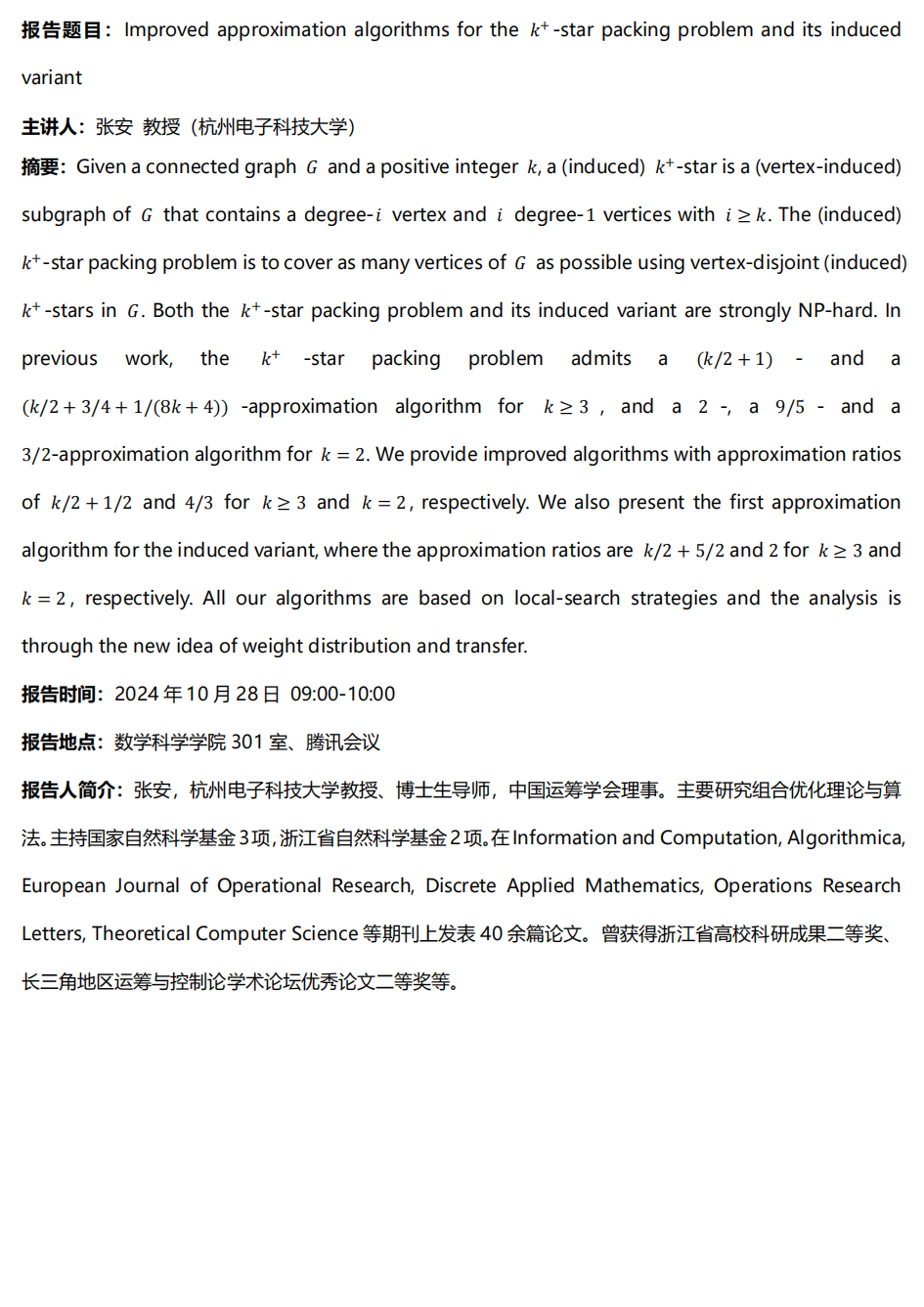 【10月28日】张安教授学术报告