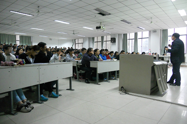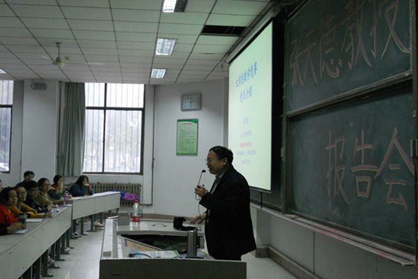 的参赛同学详细介绍了全国大学生数学竞赛的各项事宜,在报告过程中,张天德教授思路清晰,语言幽默,并且不停地与周围的老师、同学交流其中的疑难问题。最后他祝愿足球吧