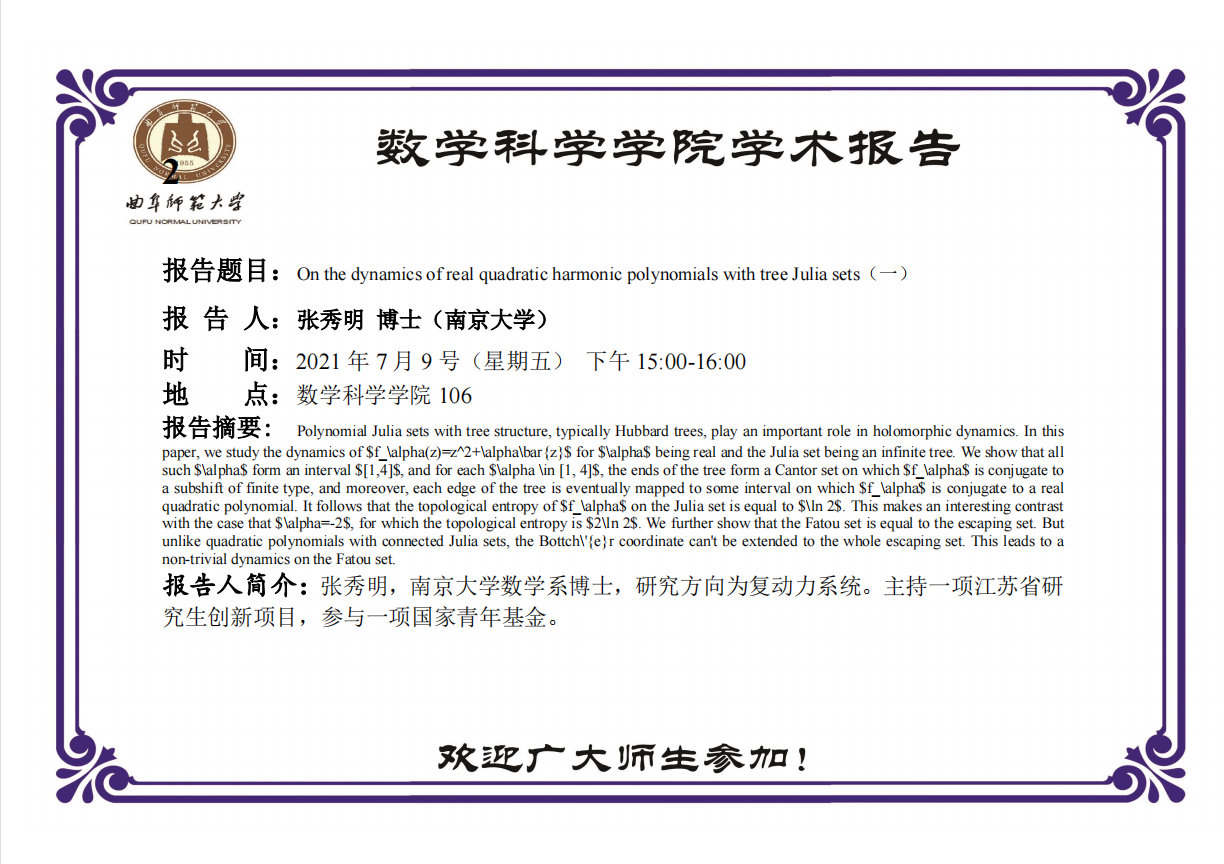 【7月9日】张秀明博士学术报告